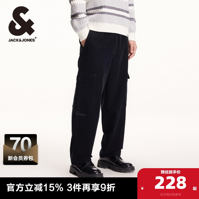 杰克琼斯outlets春季简约灯芯绒直筒裤廓形宽腿裤休闲裤子男装
