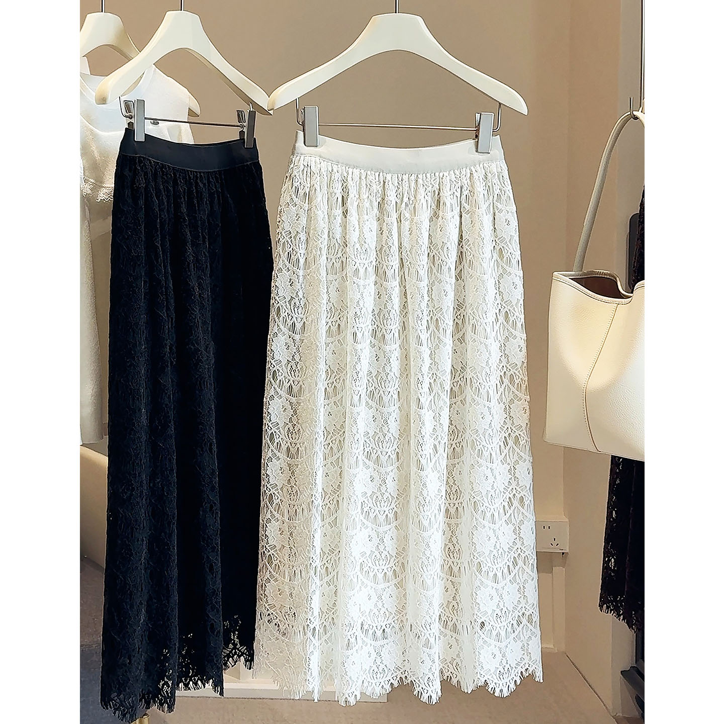 两面穿丝绒半身裙女中长款宽松显瘦蕾丝复古a字裙秋冬季新款裙子