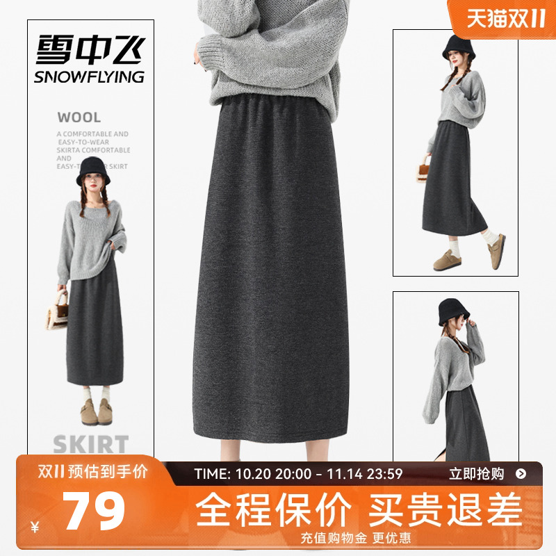 雪中飞a字半身裙女秋冬季2025新款含羊毛长裙小个子后开衩裙子PC