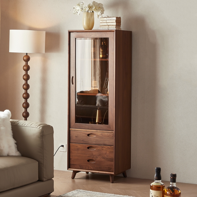 青春潮书柜北美黑胡桃木单个书架带门客厅电视边柜家用学生窄书橱