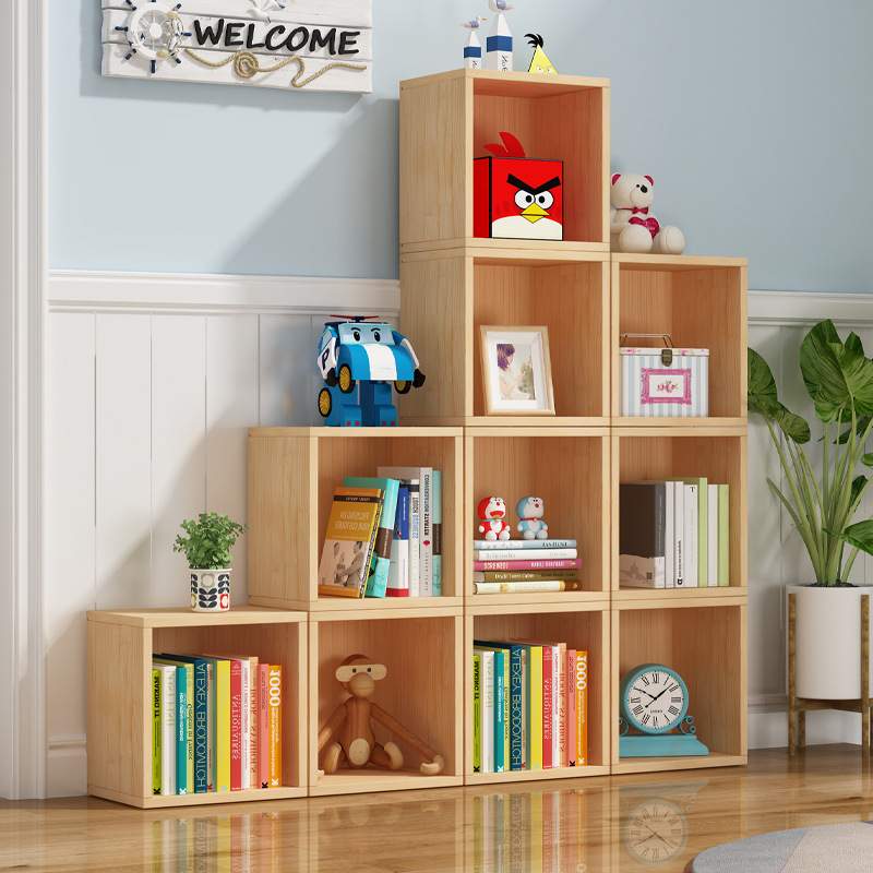 儿童书架自由组合实木储物柜简易桌面收纳格子书柜单个松木小柜子