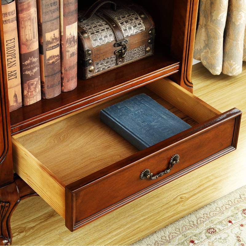 美式全实木书柜书架欧式置物柜落地复古小柜客厅单个矮展示柜靠墙