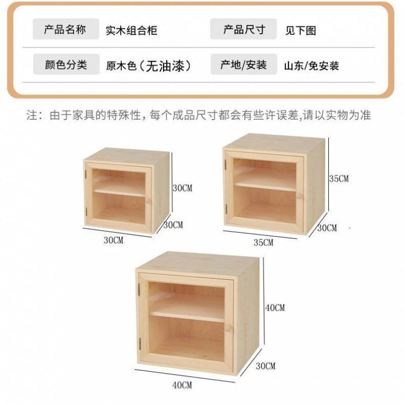 儿童全松木实木小书柜自由组合客厅玻璃门格子柜落地书架单个柜子