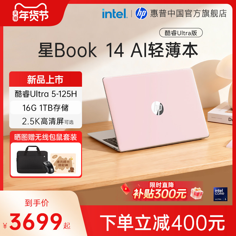 【直播间下单立减300+限时补贴300】HP/惠普可选星Book14英特尔酷睿ultra5/7笔记本电脑轻薄时尚便携AI办公本