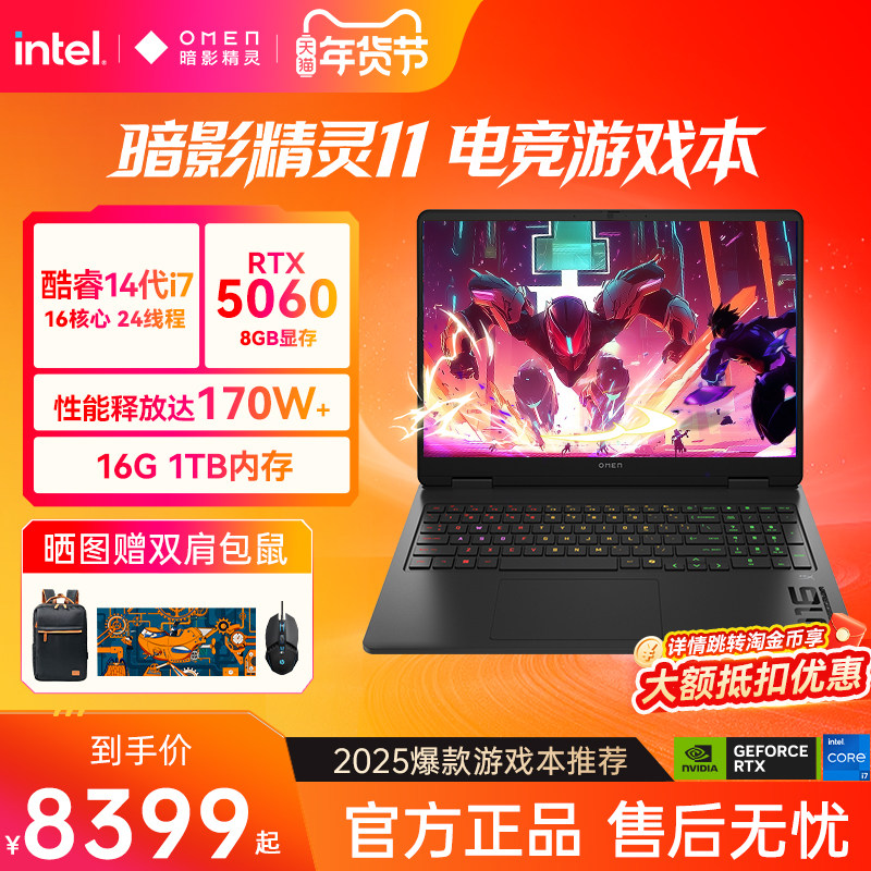 【强芯运行流畅】HP/惠普暗影精灵11可选14代酷睿i7HX RTX5070暗影游戏本电竞本笔记本电脑惠普官方旗舰店