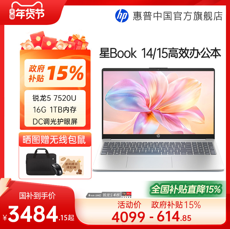 【全国补贴15%】HP/惠普可选星Book 14/15 7000系 锐龙 5 处理器惠普笔记本电脑轻薄本学生办公本