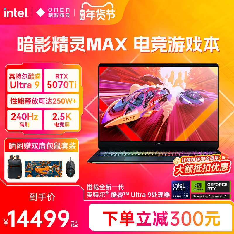 HP/惠普可选暗影精灵MAX 英特尔酷睿U9 275HX RTX5080显卡240Hz笔记本电脑游戏本惠普