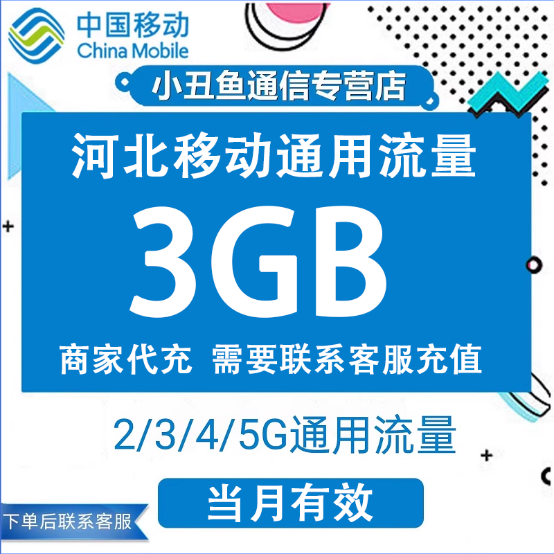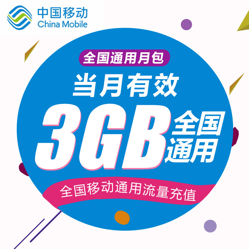 河北移动流量3GB流量充值 全国通用 当月有效 无法提速 非提速包