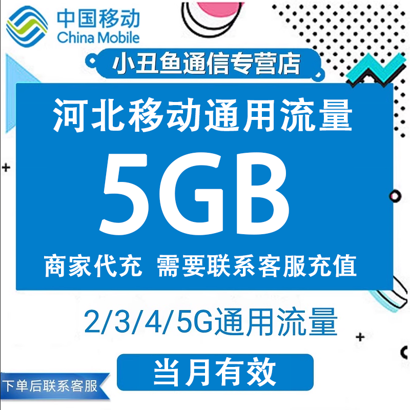 河北移动流量充值5GB当月有效3G4G5G全国通用移动流量当月有效