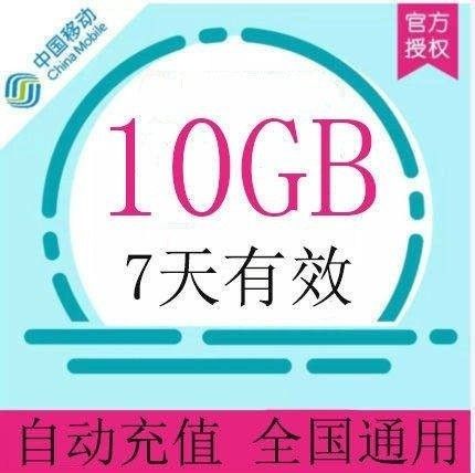 河北移动流量充值10G 全国3G/4G/5G通用手机上网流量包 7天有效WH