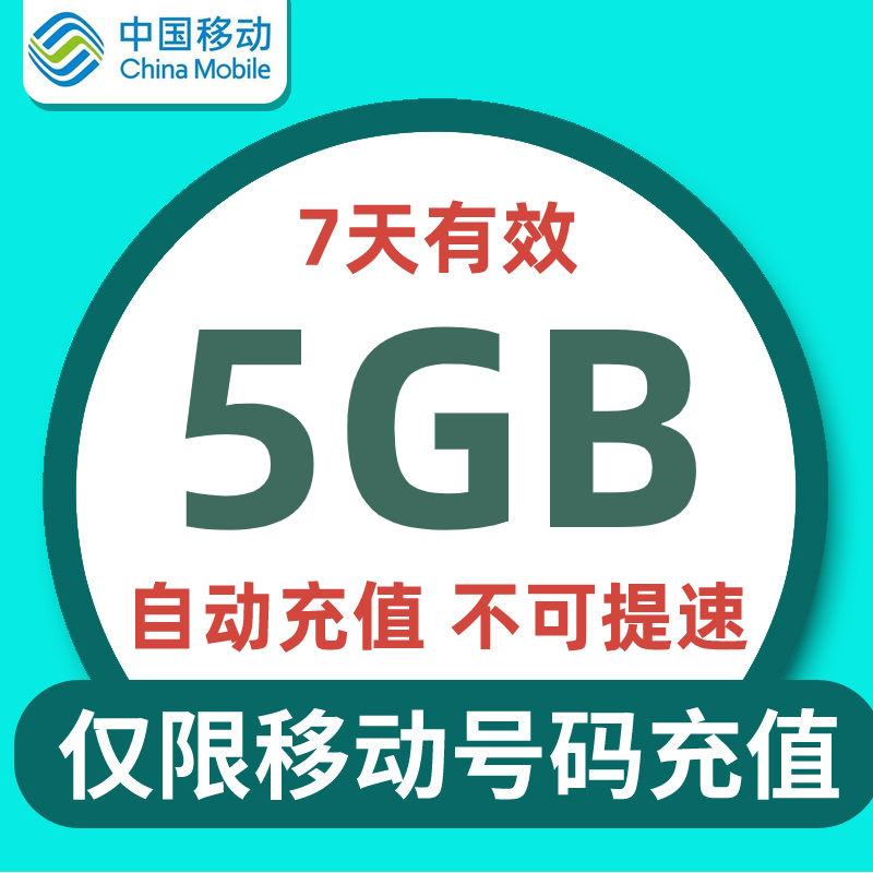 河北移动流量包 7天包5GB全国通用流量充值 特惠包7天有效不提速Q