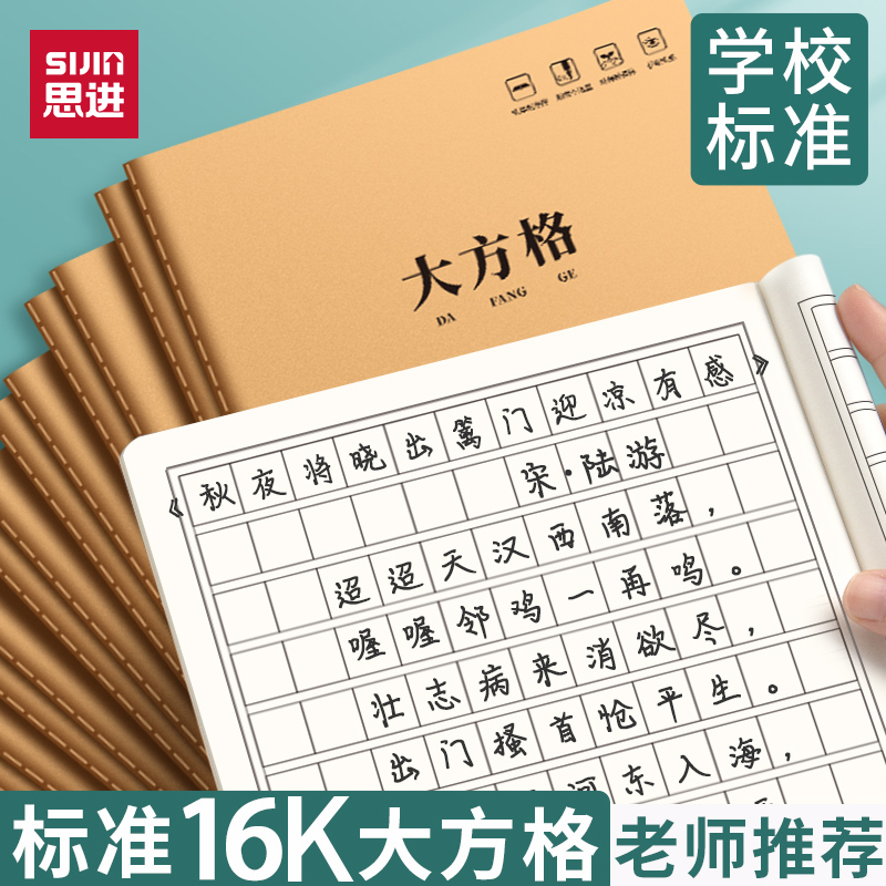 思进大方格本16K大号小学生中方格本小字本牛皮本学校统一小学生加厚方格本生字本语文中方格本日记本练字本