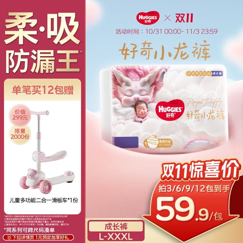 好奇官方皇家御裤柔吸防漏王小龙裤成长裤L/XL/XXL/XXXL尿不湿