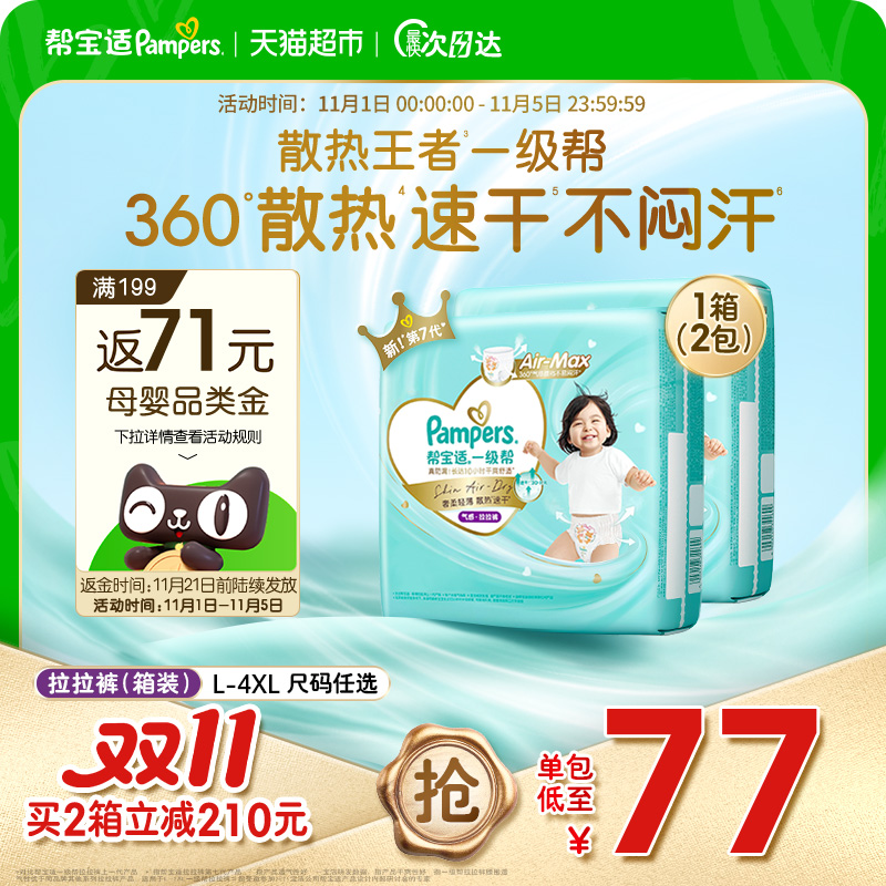 【散热王者】帮宝适一级帮拉拉裤超薄散热透气L-4XL尿不湿箱装