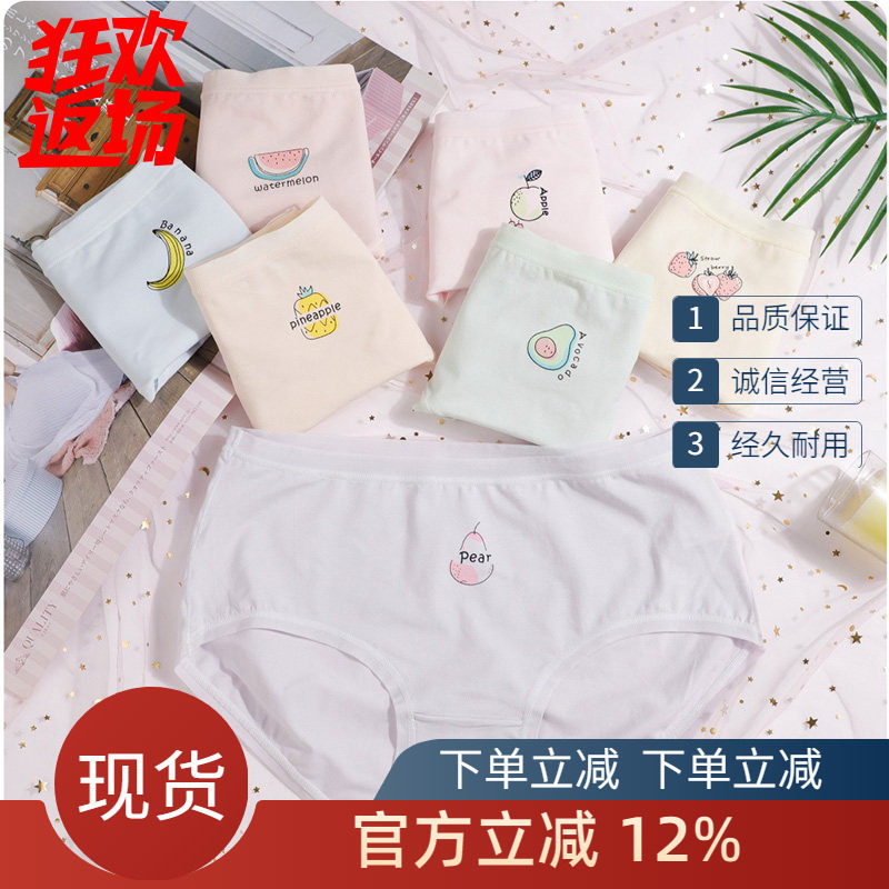 女士内裤纯棉裆中腰提臀甜美7条装星期少女三角短裤大码性感收腹