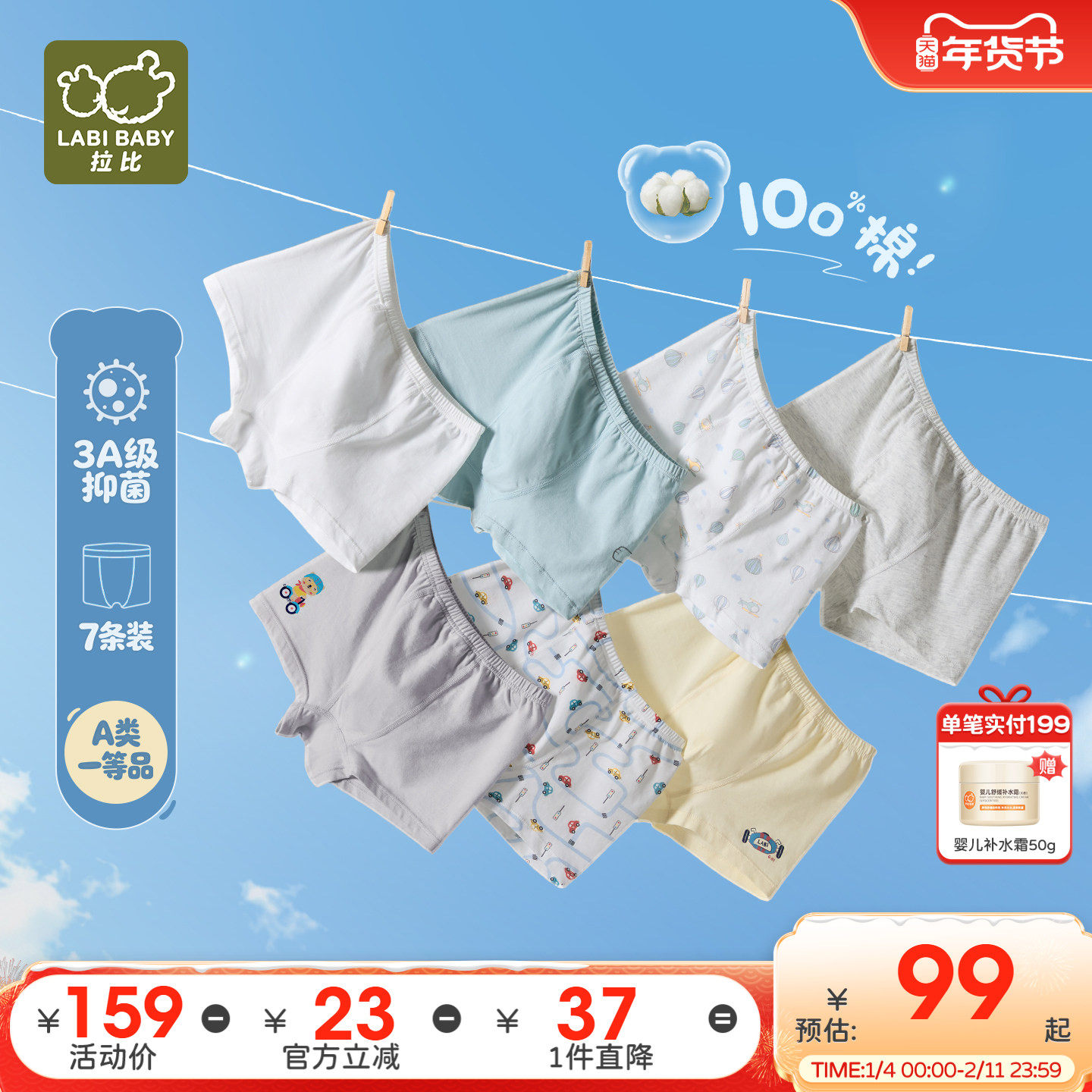 【星期装】拉比儿童三角内裤纯棉平角短裤男女童四角抑菌内裤7条