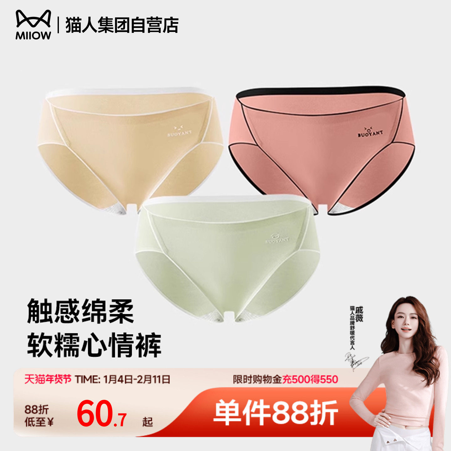 猫人内裤女纯棉聚乳酸桑蚕丝抗菌底档心情裤高开叉拼接性感星期裤