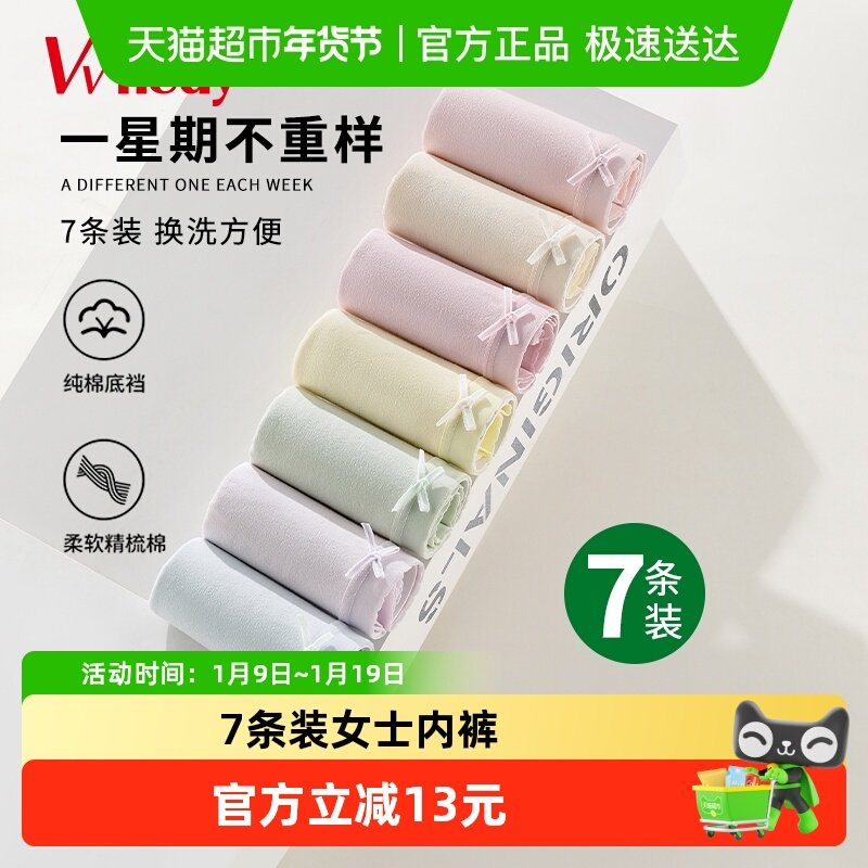 VVHEDY女士内裤星期裤全棉底裆舒适透气糖果色女生中腰款三角裤头