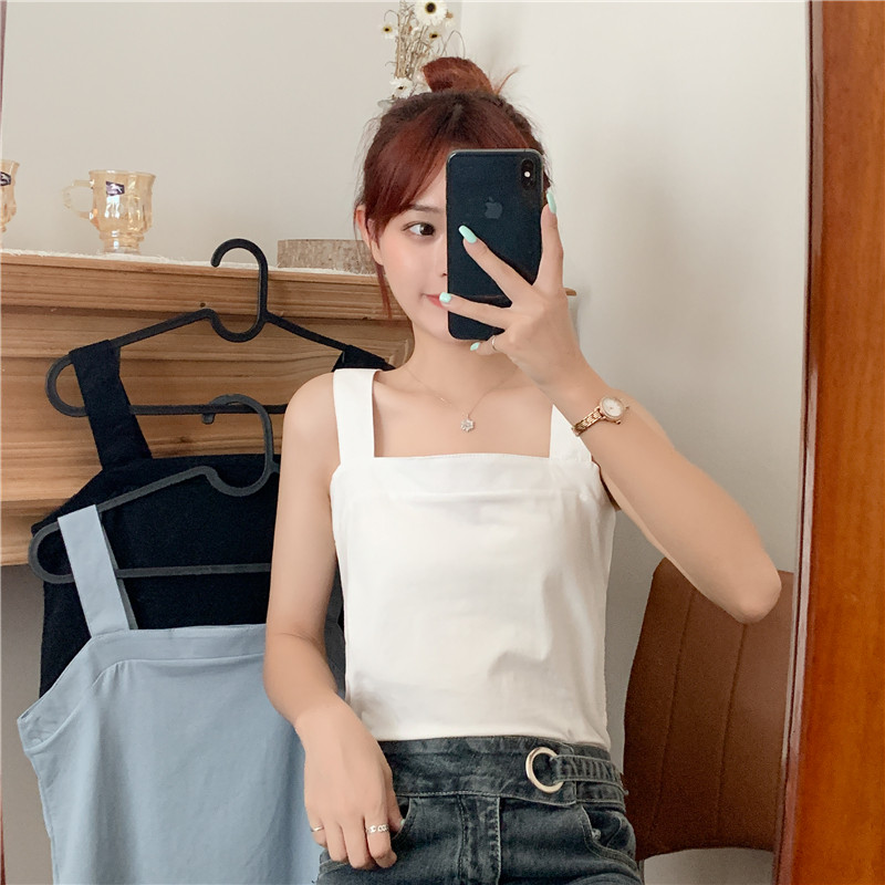 韩版莫代尔百搭小吊带背心女装夏季短款宽松黑色打底学生内搭上衣