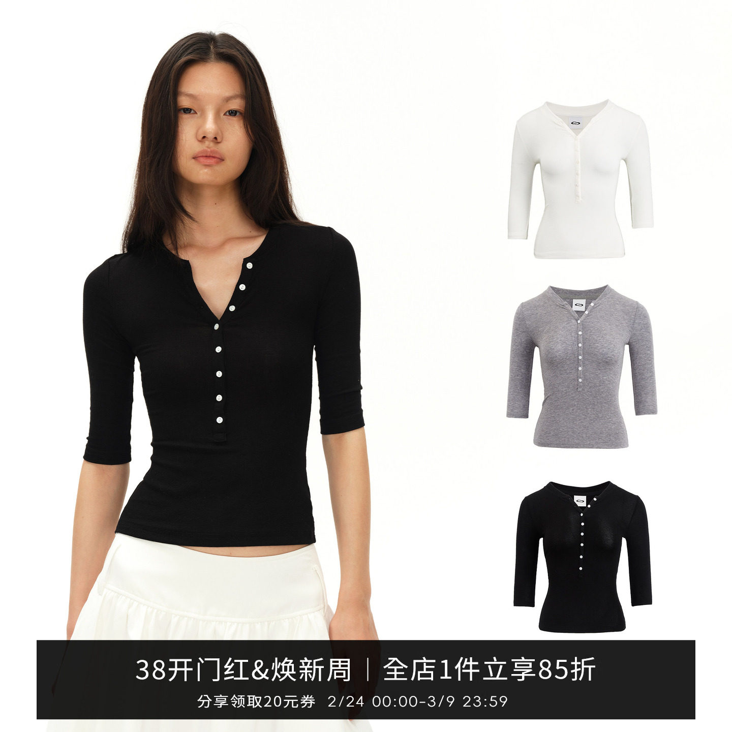 - 纯白t恤女短袖修身