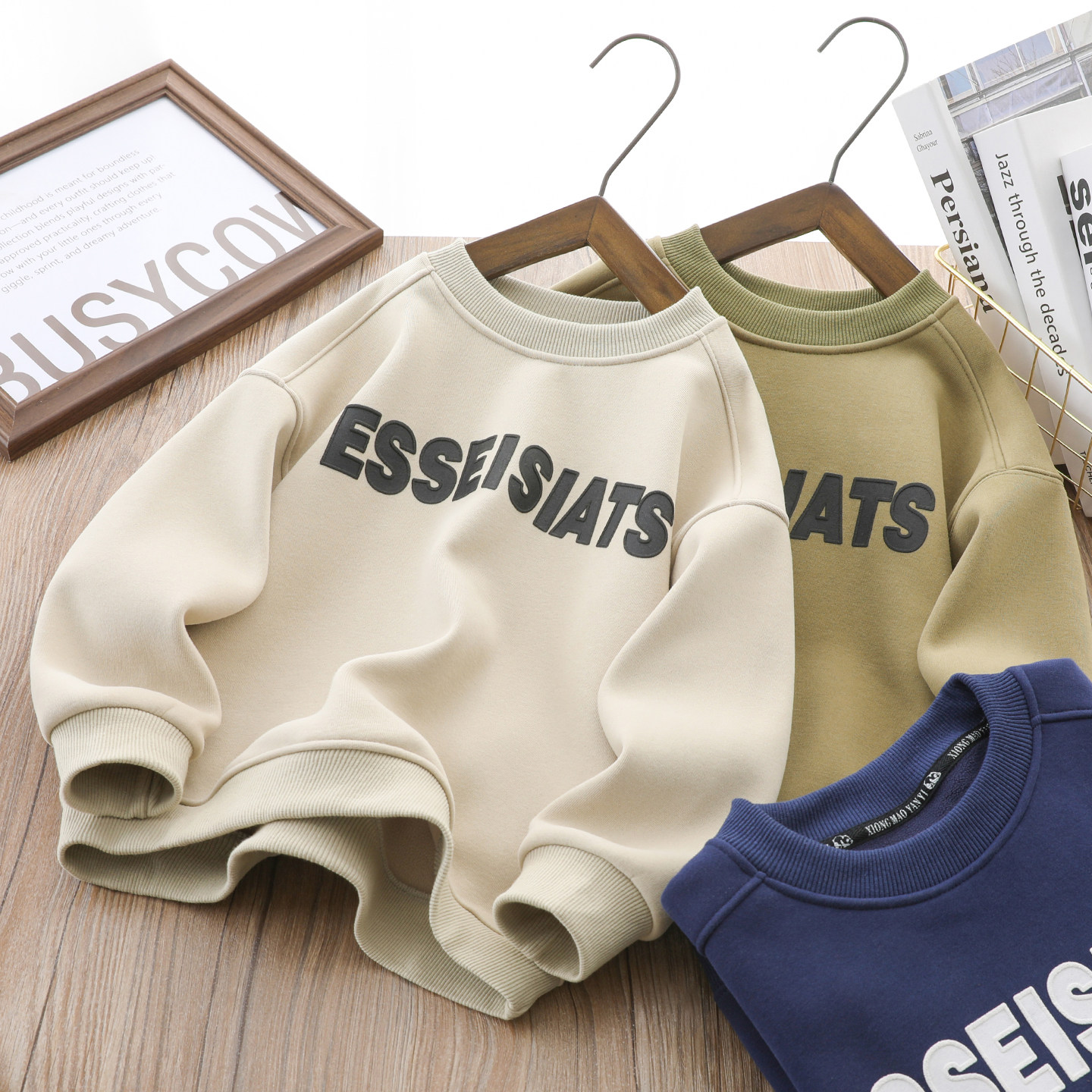 男童卫衣加绒加厚半高领冬季2025新款韩版中大童儿童字母潮流上衣