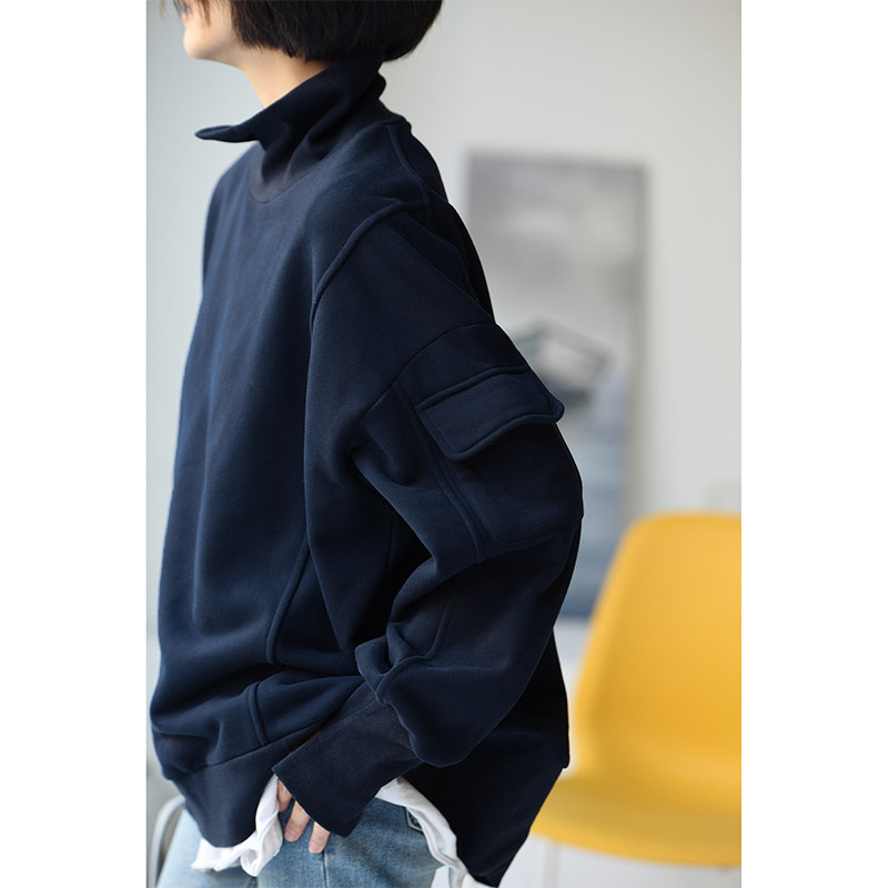 R1123C不规则设计宽松高领加绒套头卫衣女韩版休闲百搭冬米兰宣言