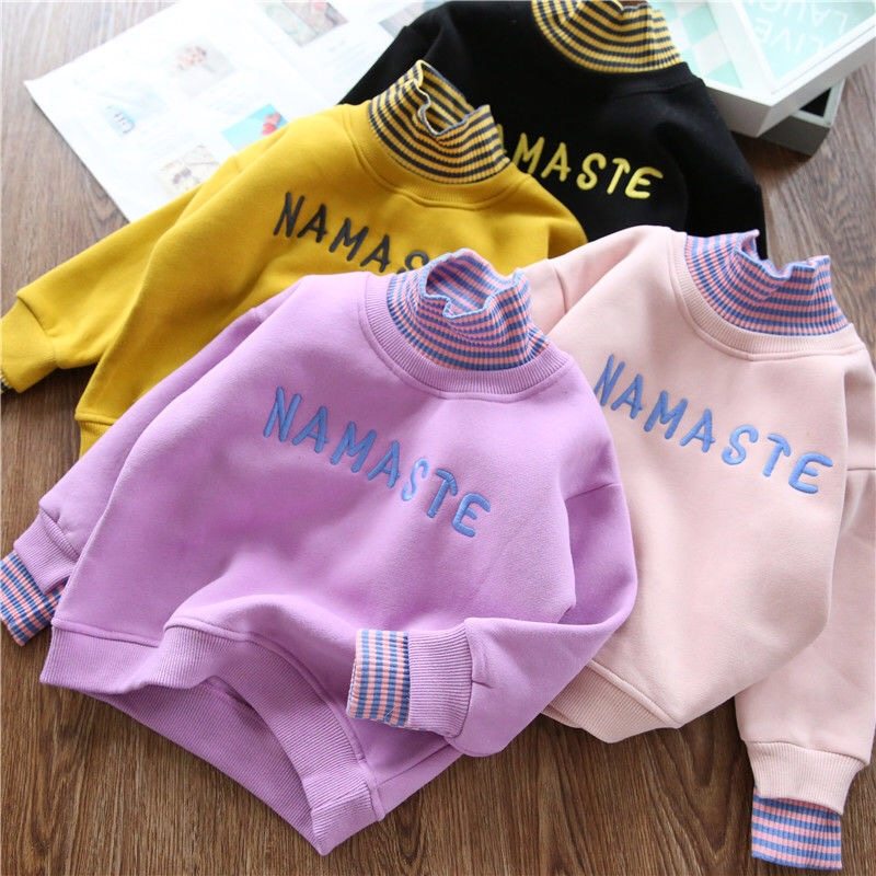 儿童秋冬卫衣高领加绒加厚夹棉韩版保暖上衣女宝宝T恤洋气打底衫