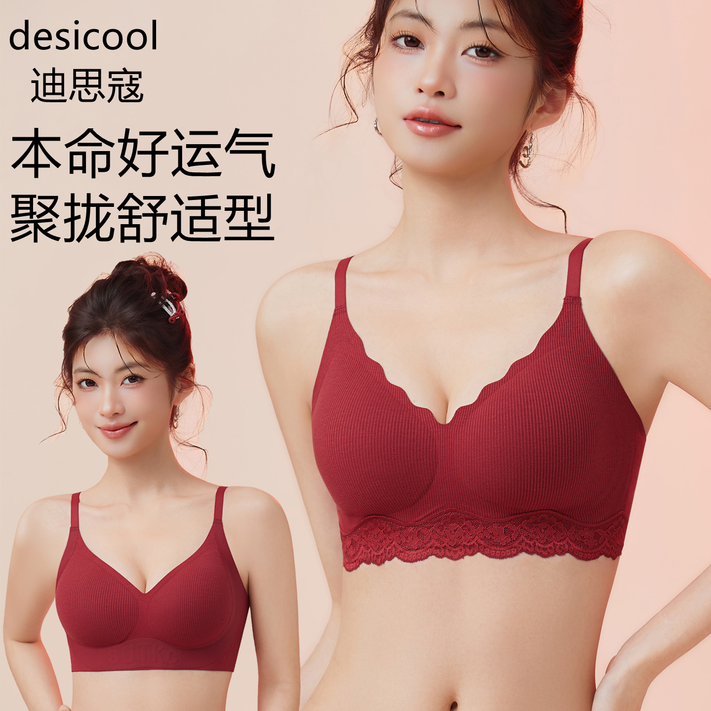 DK文胸套装本命年红色内衣内裤女性感蕾丝大胸显小聚拢结婚超薄款