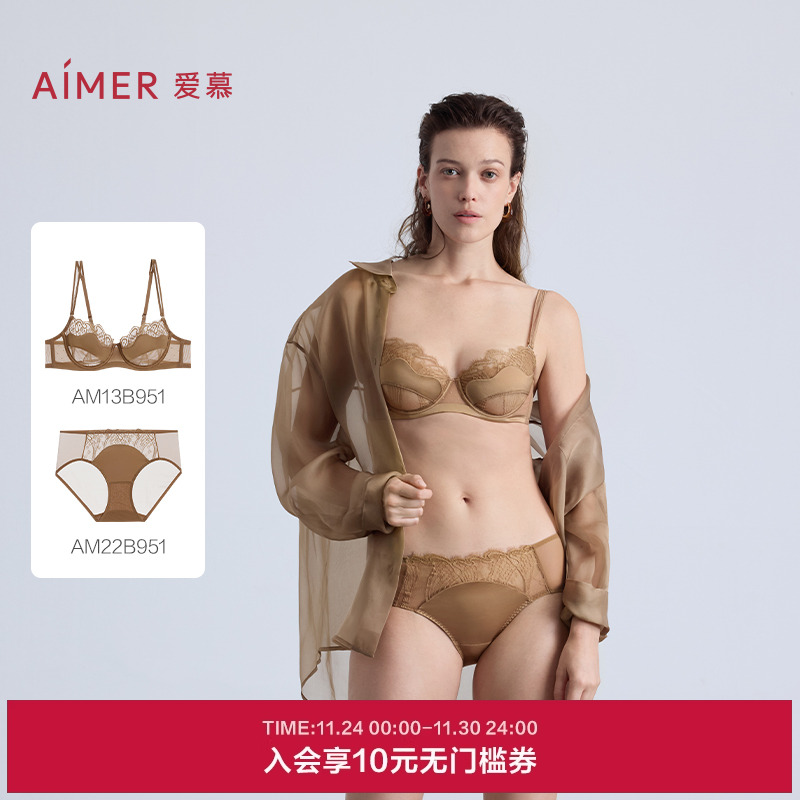 MYBODY商场同款内衣套装女大胸显小蕾丝性感薄胸罩文胸内裤两件套