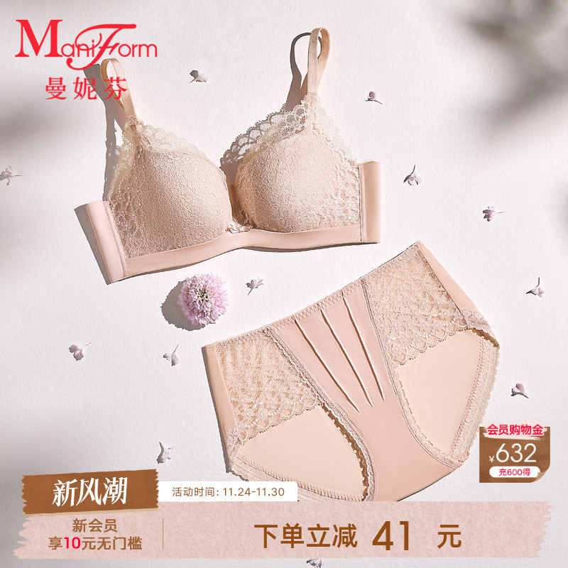 曼妮芬性感蕾丝文胸内裤套装女士小胸聚拢胸罩内衣20812392