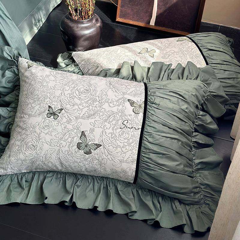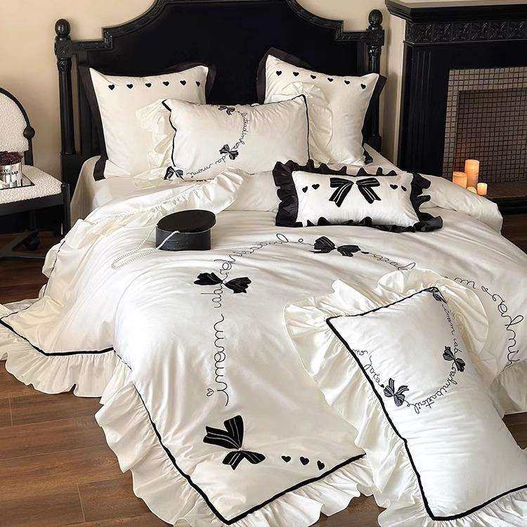 公主风蝴蝶结花边100S全棉床单四件套纯棉被套长绒棉法式床上用品