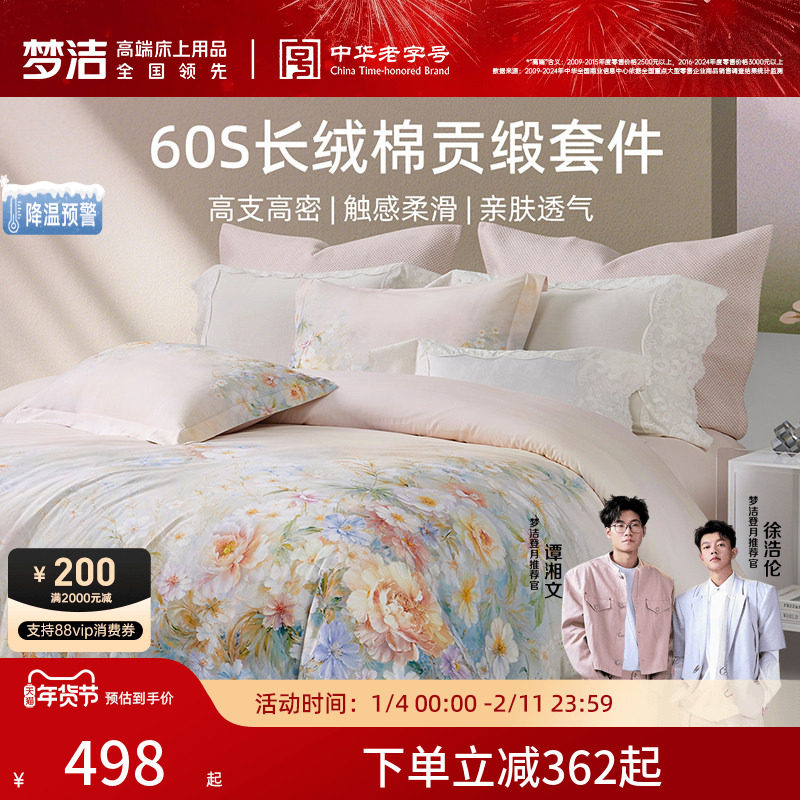 梦洁家纺100支长绒棉床单四件套纯棉全棉双股轻奢床品高端送礼