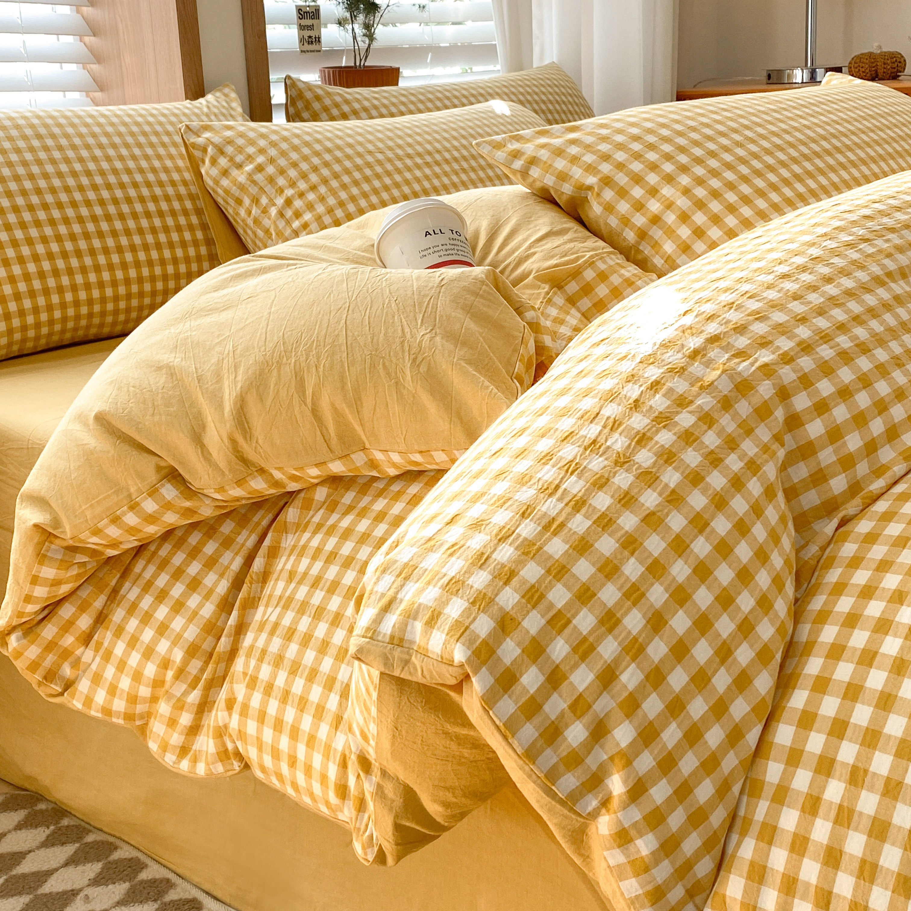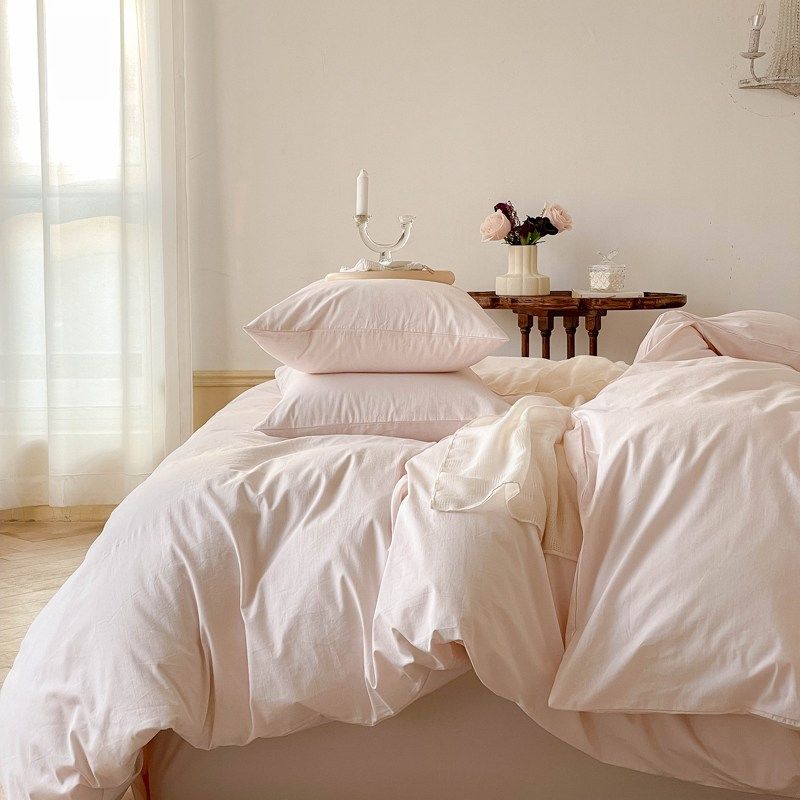 100%全棉水洗棉床单四件套纯棉简约ins风少女心被套宿舍三件套