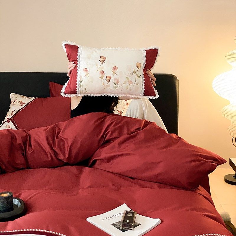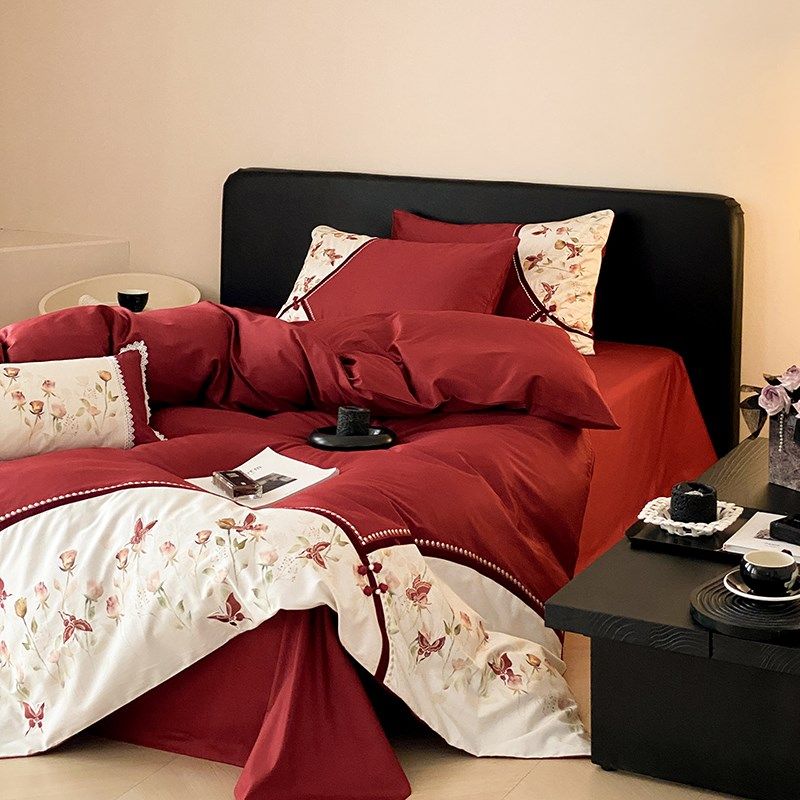 婚庆嫁娶100S全棉长绒棉床单四件套纯棉刺绣被套四季1.8m床单床品
