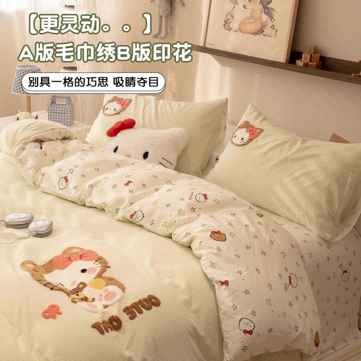 卡毛巾绣通上全棉床单四件套纯棉色TT202512被织水洗棉套罩巨好看