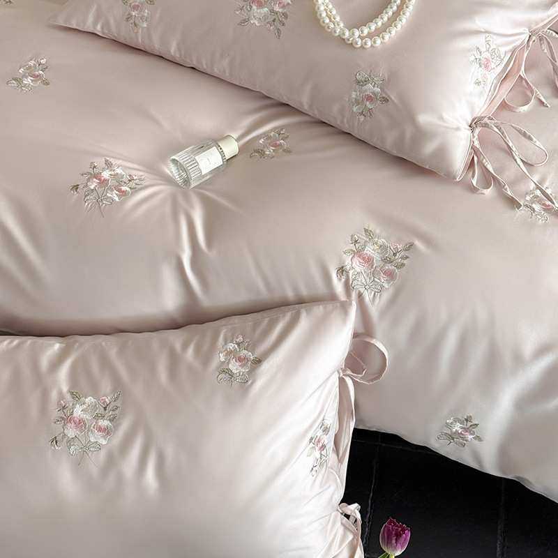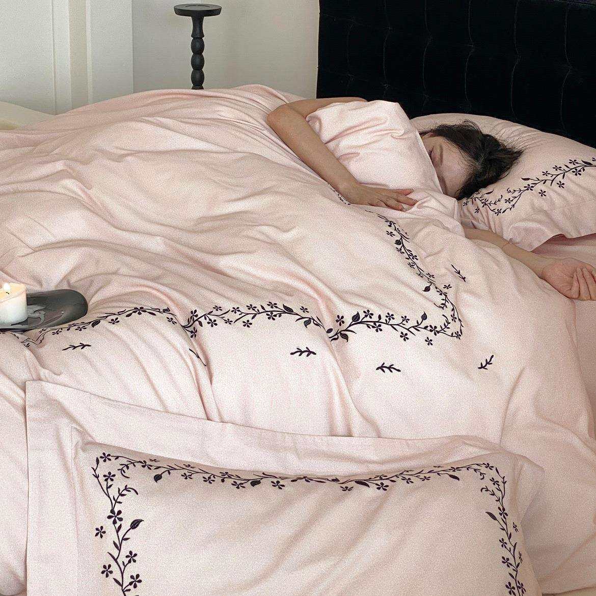 小清新100S长绒棉床单四件套纯棉少女心刺绣全棉被罩裸睡床上用品
