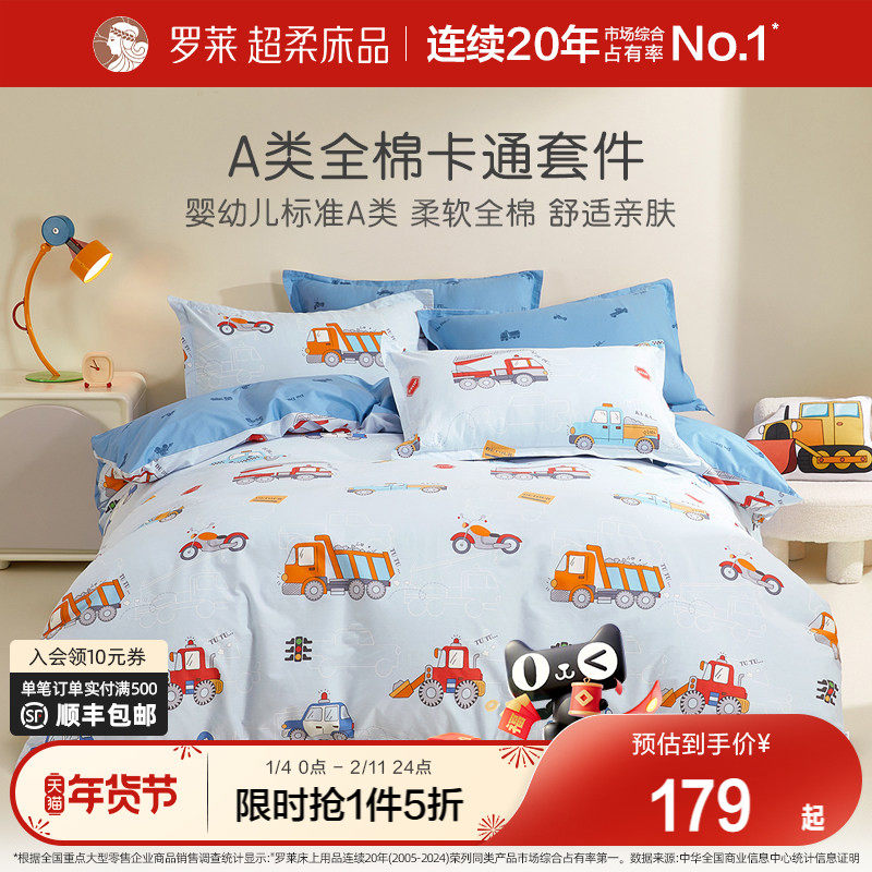 罗莱家纺儿童四件套纯棉男孩被套被罩全棉床单三件套床品学生宿舍