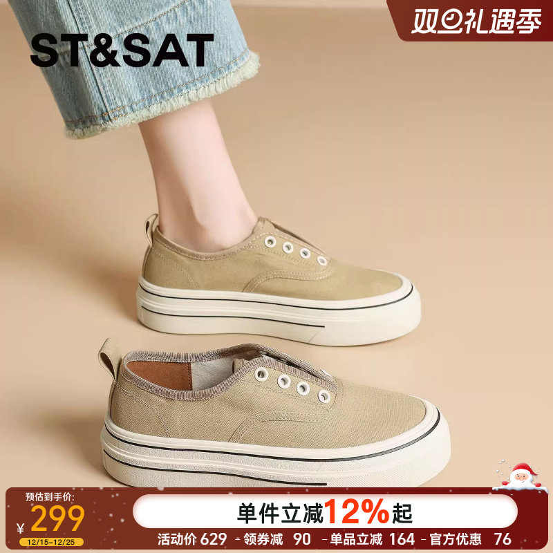 - 一脚蹬厚底帆布鞋 女