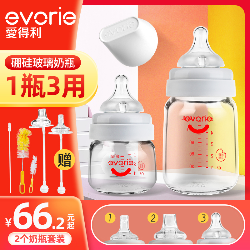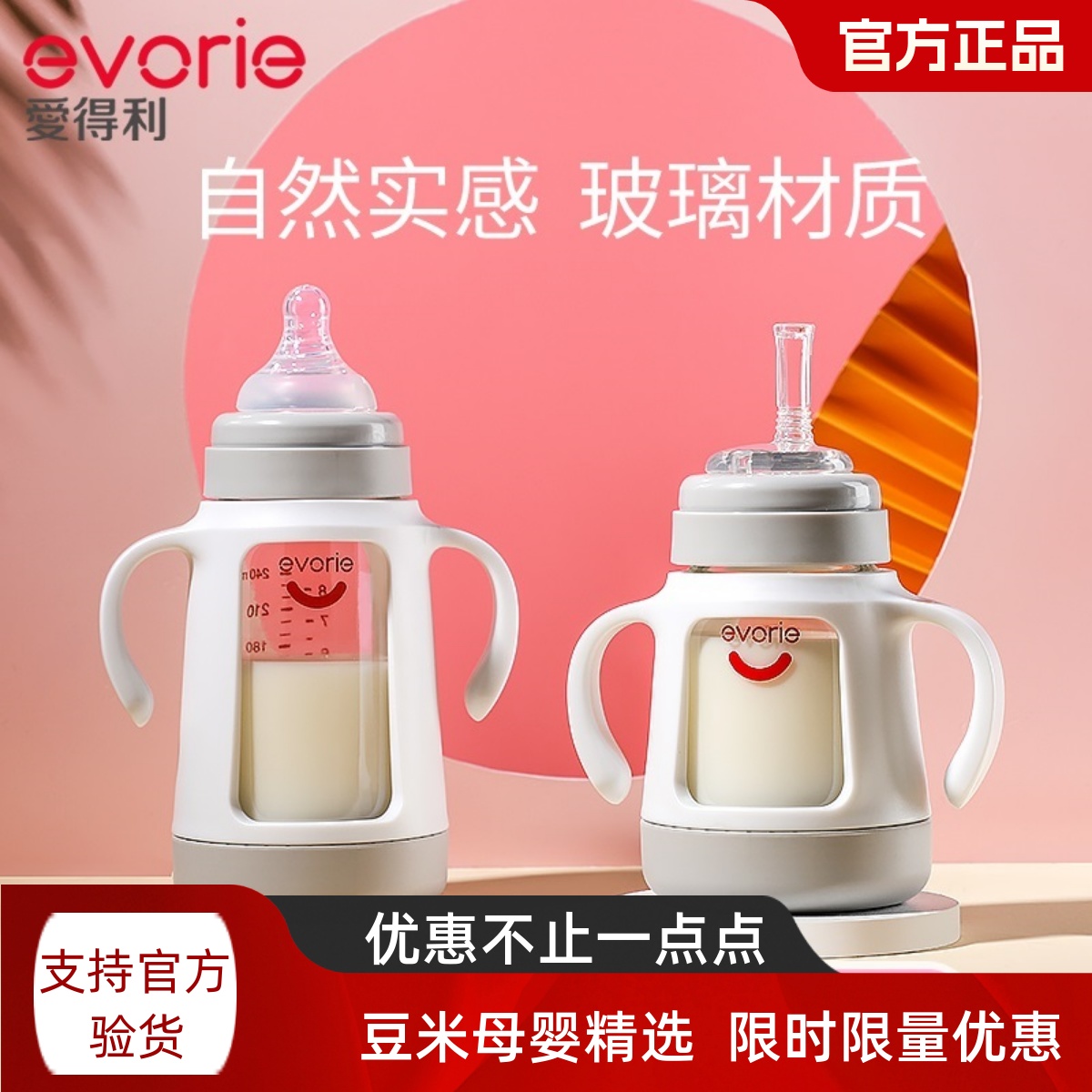 evorie爱得利玻璃奶瓶新生婴儿0到6个月以上防胀气宽口径宝宝奶瓶