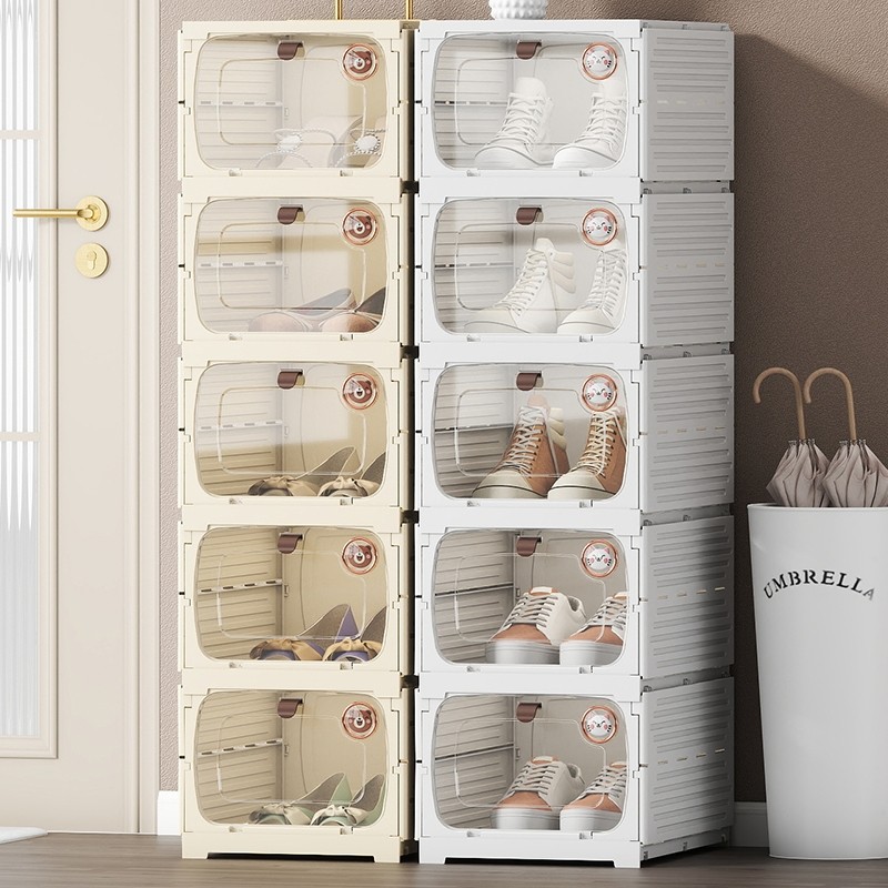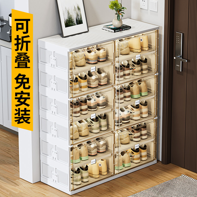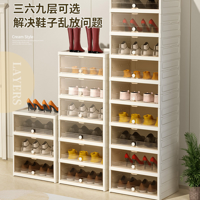 鞋盒鞋子收纳神器家用门口鞋柜塑料收纳盒透明一体靠墙收纳柜鞋架
