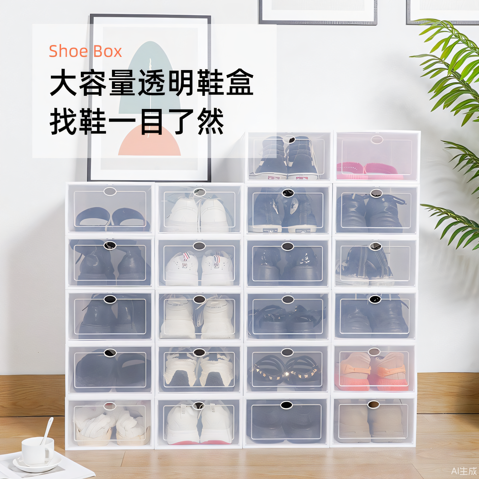 家用鞋盒透明鞋柜塑料收纳盒折叠防尘防潮鞋子收纳神器宿舍省空间
