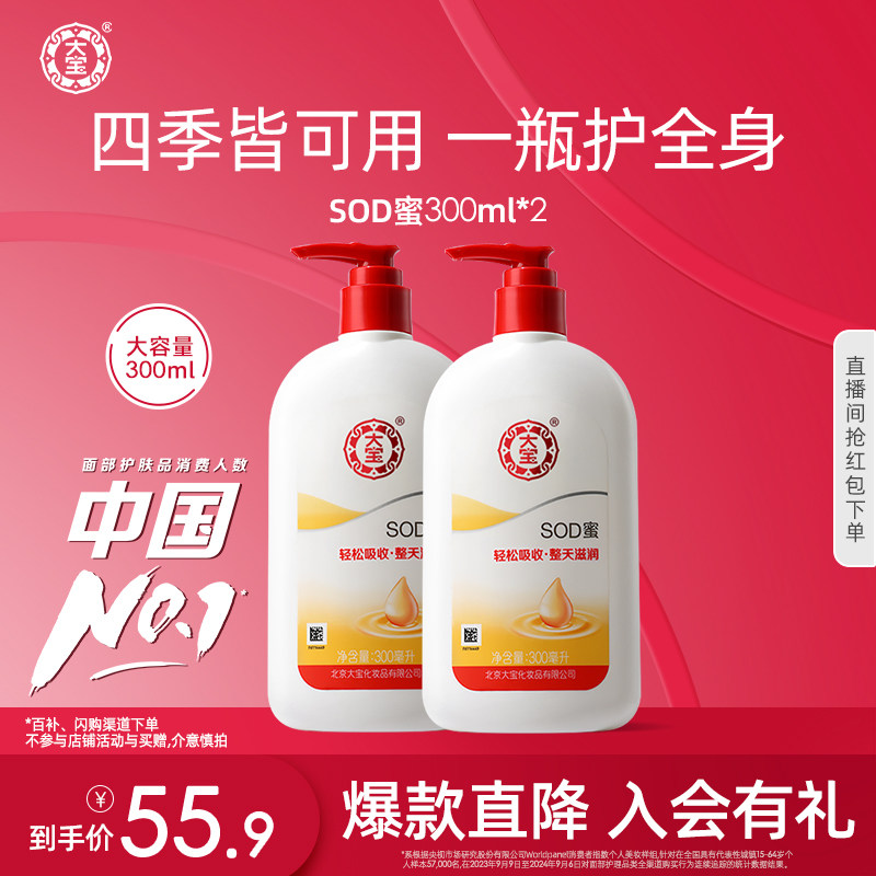 大宝SOD蜜300ml*2补水保湿乳液面霜护手霜男士全身护肤女官方正品