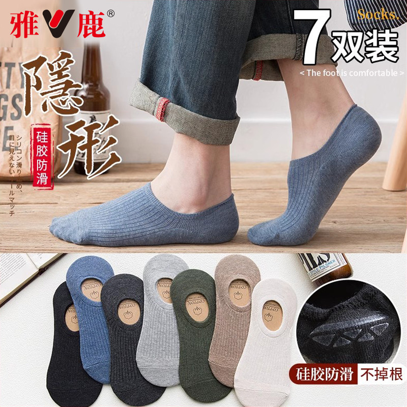 雅鹿袜子男士纯棉短袜船袜防臭吸汗舒适透气短筒男款隐形秋季JN