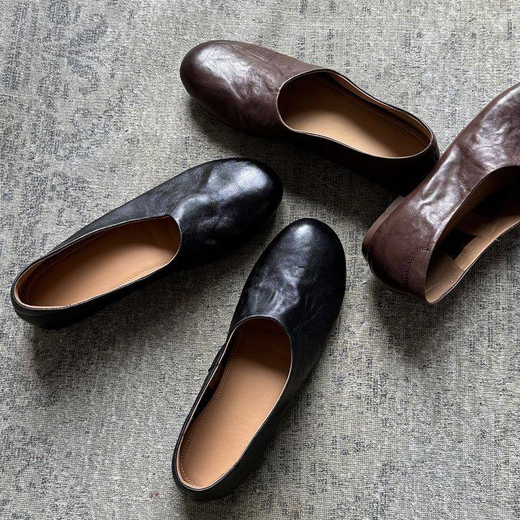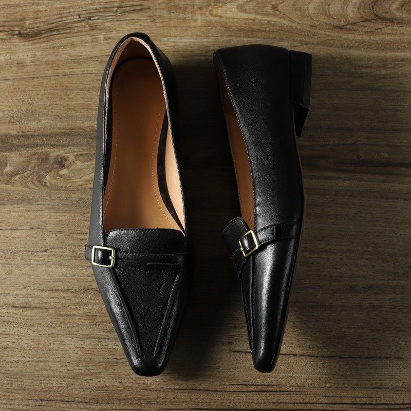 法式复古低跟单鞋女2025新款夏真皮尖头浅口小皮鞋通勤瓢鞋工作鞋