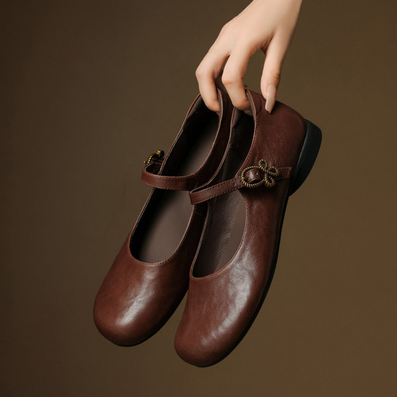 专柜撤柜真皮女鞋春夏新款复古低跟单鞋一字带平底玛丽珍鞋芭蕾鞋