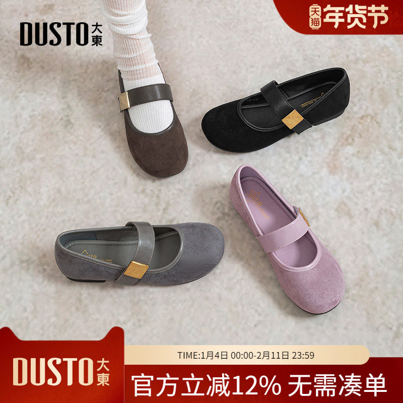 大东dd软底玛丽珍女鞋2026春秋新款魔术贴复古绒面低跟浅口单鞋女