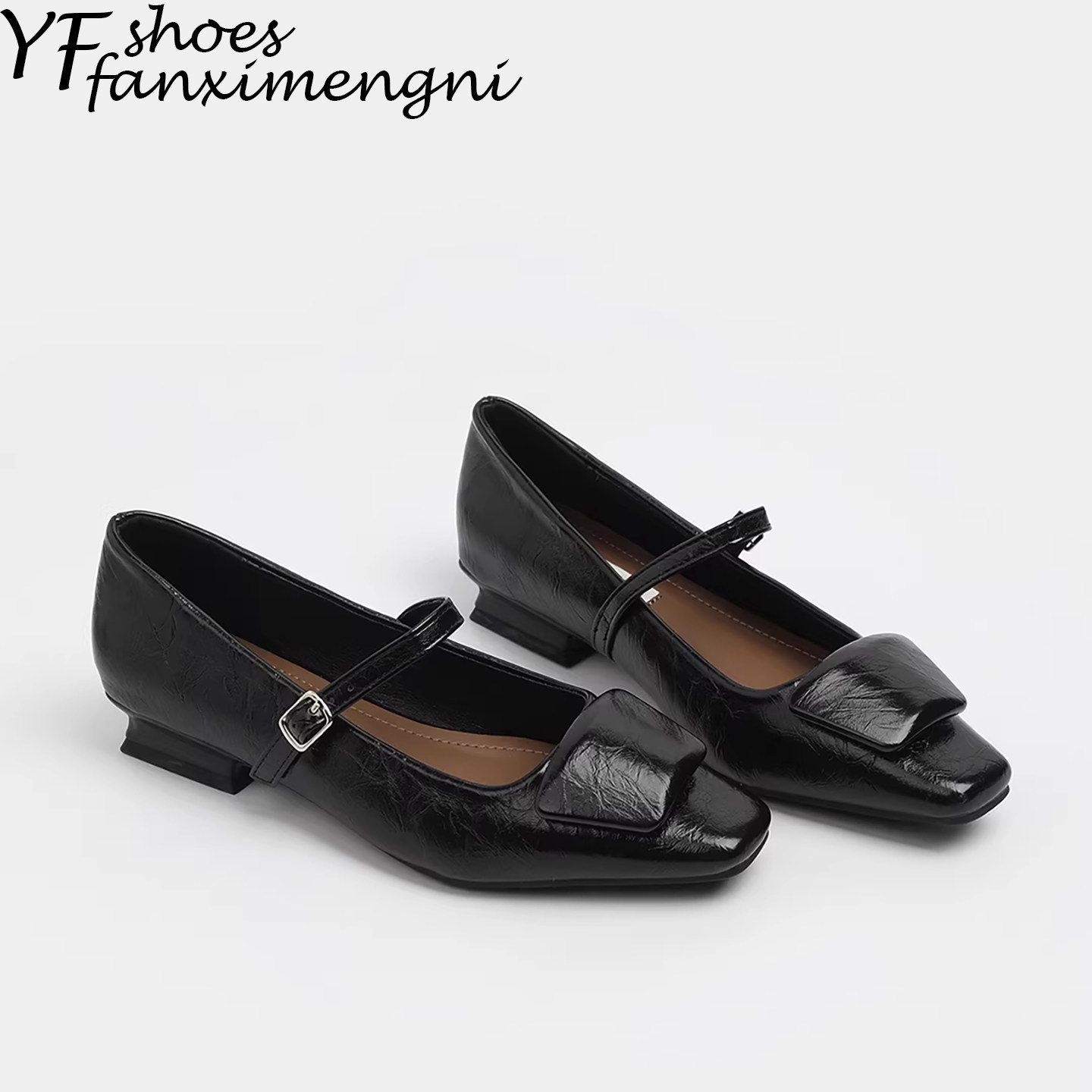 低跟复古一字式扣方头软底粗跟单鞋女2025春秋新款浅口玛丽珍女鞋