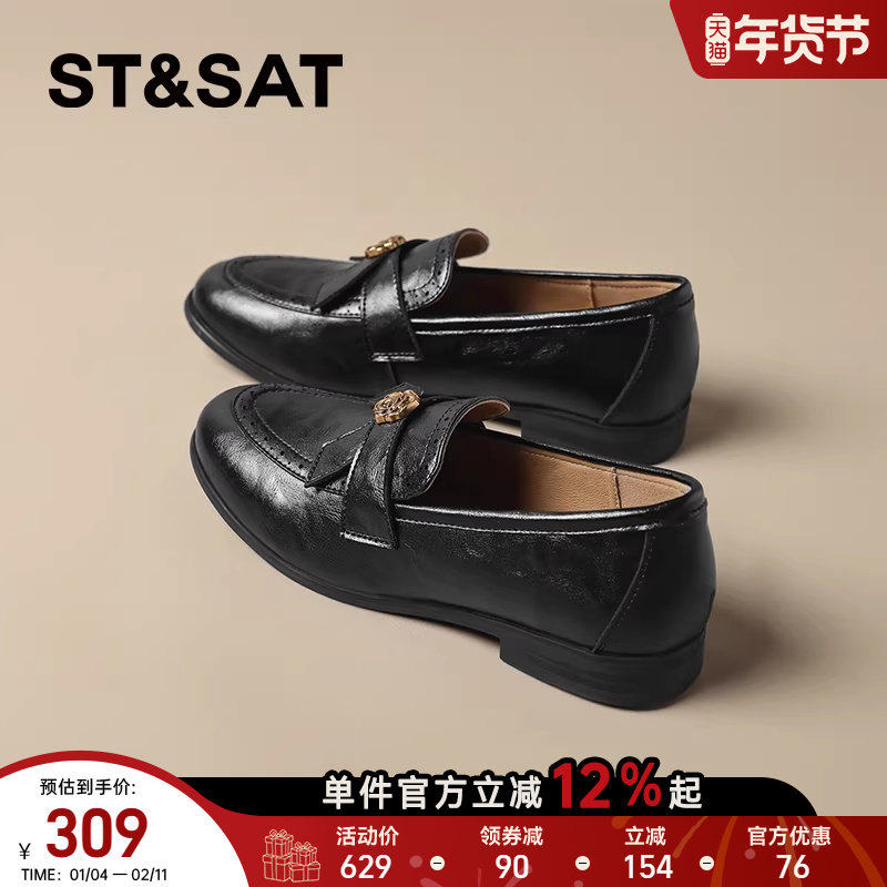星期六低跟乐福鞋女2026春季黑色复古时尚百搭通勤一脚蹬深口单鞋