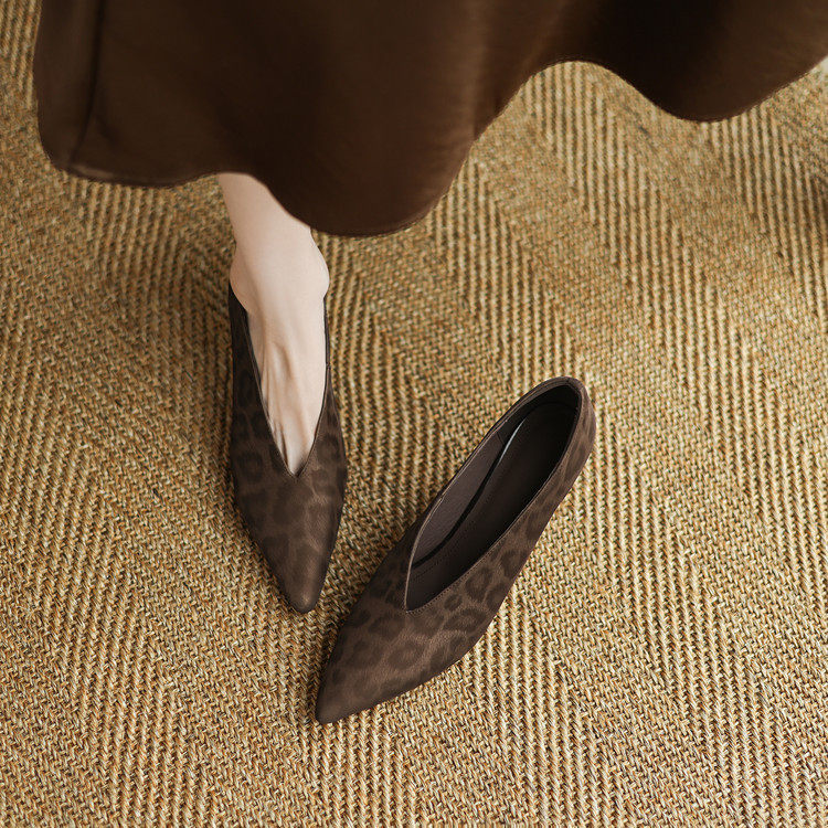 5CM,牛皮豹纹高跟鞋法式复古低跟单鞋套筒气质跟鞋时尚细跟通勤