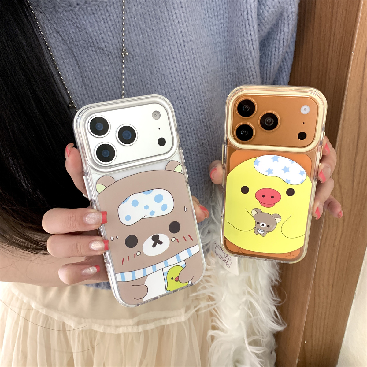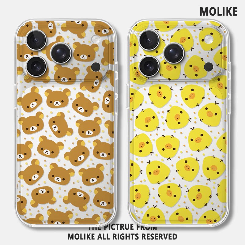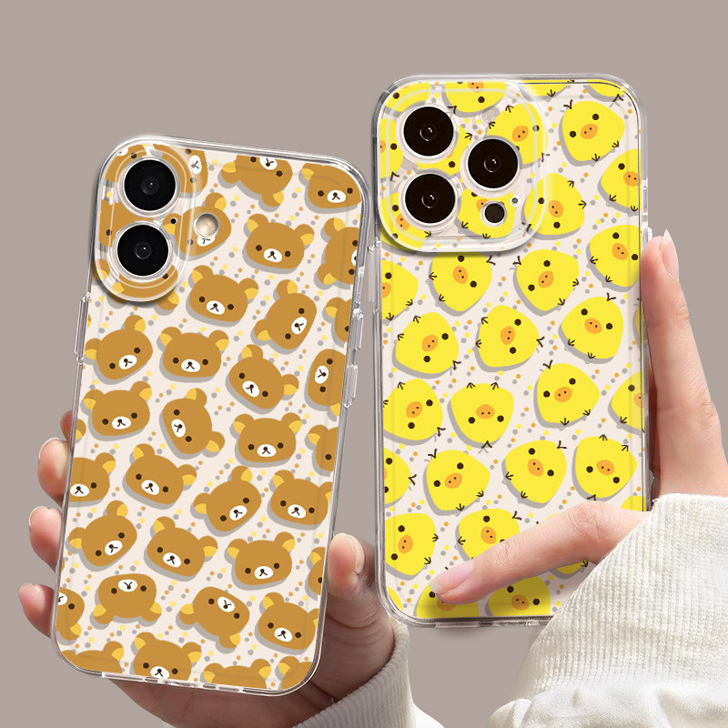 满屏轻松熊小黄鸡适用苹果17promax手机壳iPhone16透明15新款14卡通可爱13mini情侣12男女11防摔x套xr/xs/8/7